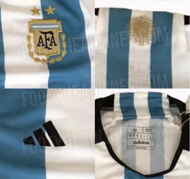 Come si può vedere dalle foto spia, la maglia casalinga della Coppa del Mondo della nazionale argentina continua il design a righe bianche e blu di cui i “Pampas Eagles” sono orgogliosi, e sono disegnate le strisce blu e bianche sul davanti e sul retro della maglia in stili diversi. La parte anteriore della maglia è presentata in uno stile tradizionale, con tre strisce verticali celesti aggiunte alla maglia bianca, mentre la parte posteriore della maglia ha un design creativo. Una delle tre strisce verticali azzurre sul retro della maglia viene aggiunta con sottili strisce verticali bianche e, allo stesso tempo, l’elemento centrale della bandiera argentina – “May Sun” viene aggiunto alla posizione del colletto posteriore, in modo da per integrare l’immagine completa della bandiera nazionale nel design della maglia.