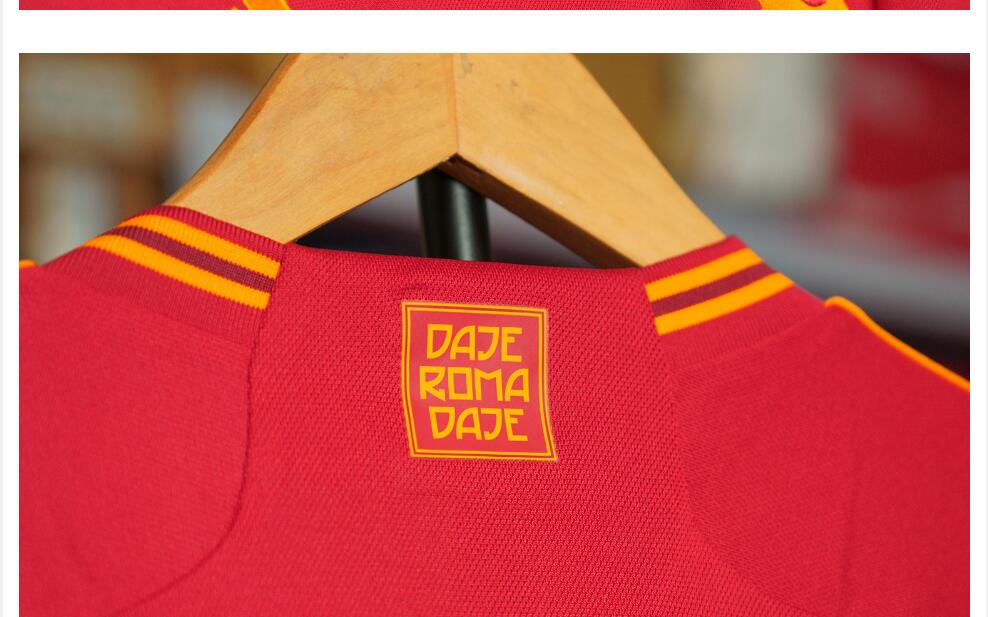 Dopo che la Roma ha firmato nuovamente con Adidas, la prima maglia da casa ha scelto di tornare alla storia e ha tratto ispirazione dal design delle divise della squadra della stagione 92/93 con cui le due squadre hanno collaborato l’ultima volta, con l’obiettivo di celebrare il passato e guardare al futuro. La maglia, i pantaloncini e i calzettoni sono realizzati nel tradizionale rosso Pompei, che è il colore più iconico del club giallorosso. Gli abbellimenti decorativi sulla maglia sono giallo oro per completare l’immagine visiva.