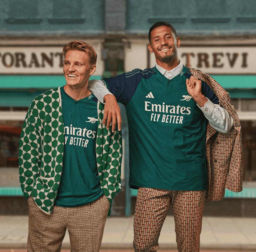 L’Arsenal Club e Adidas hanno lanciato una nuova terza maglia per la stagione 2023/24, rendendo omaggio allo stile retrò degli anni ’80. La nuova seconda maglia da trasferta si basa sul verde minerale, con spalle blu navy universitarie e stemmi in stile bianco sporco e loghi degli sponsor, reinterpretando gli stili classici che sono popolari oggi.